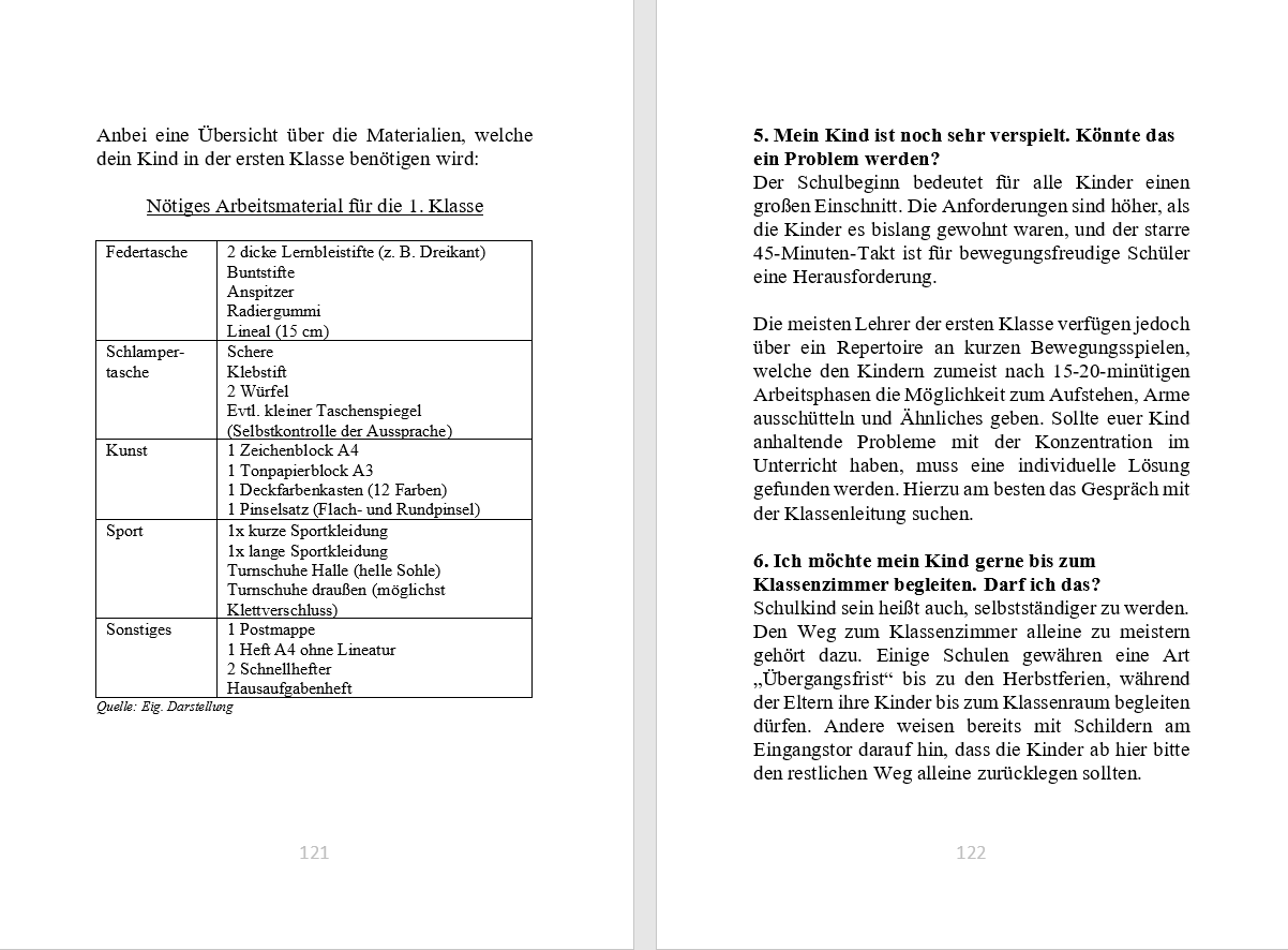 "Ein kurzer, guter Einblick in den Schulstart, der nicht nur für die Kinder, sondern auch für die Eltern herausfordernd, spannend und neu ist."